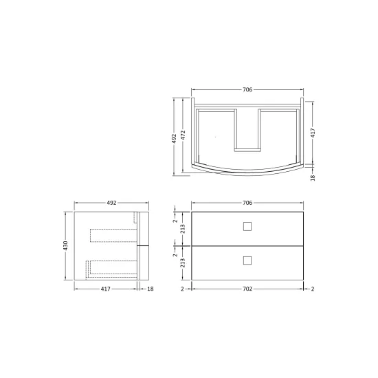 Sarenna Wall Hung 2 Drawer Vanity Unit 706mm