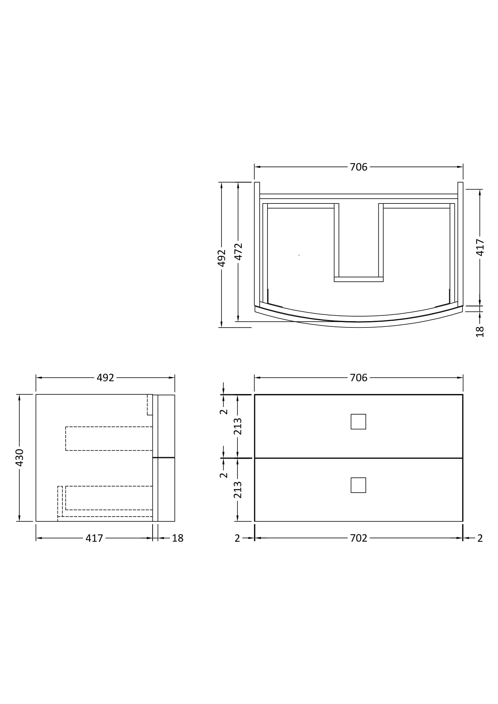 Sarenna Wall Hung 2 Drawer Vanity Unit 706mm