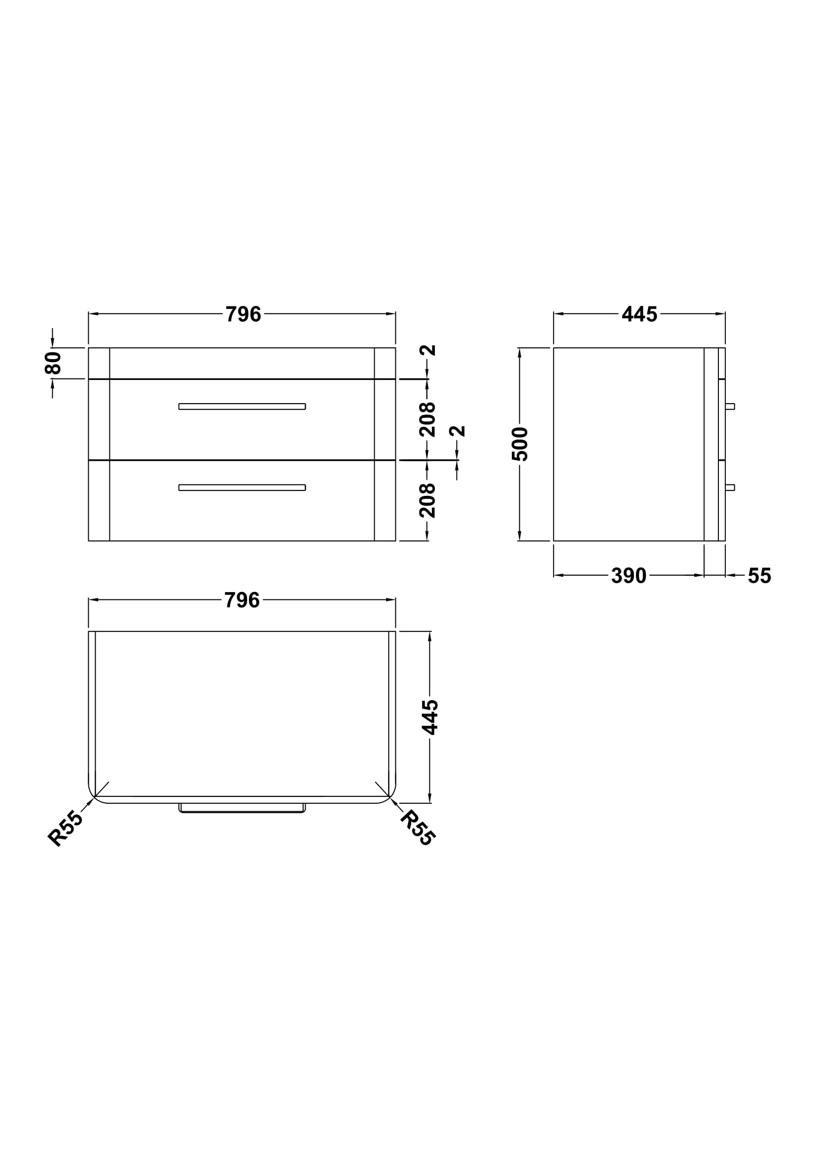 Solar Wall Hung 2 Drawer Vanity Cabinet 800mm