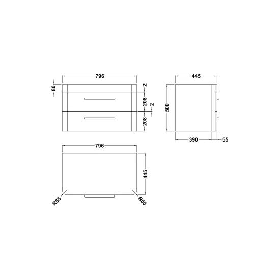 Solar Wall Hung 2 Drawer Vanity Cabinet 800mm