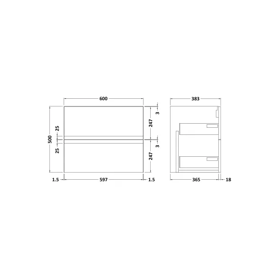 Hudson Reed Urban 600mm Wall Hung 2-Drawer Unit - Satin White