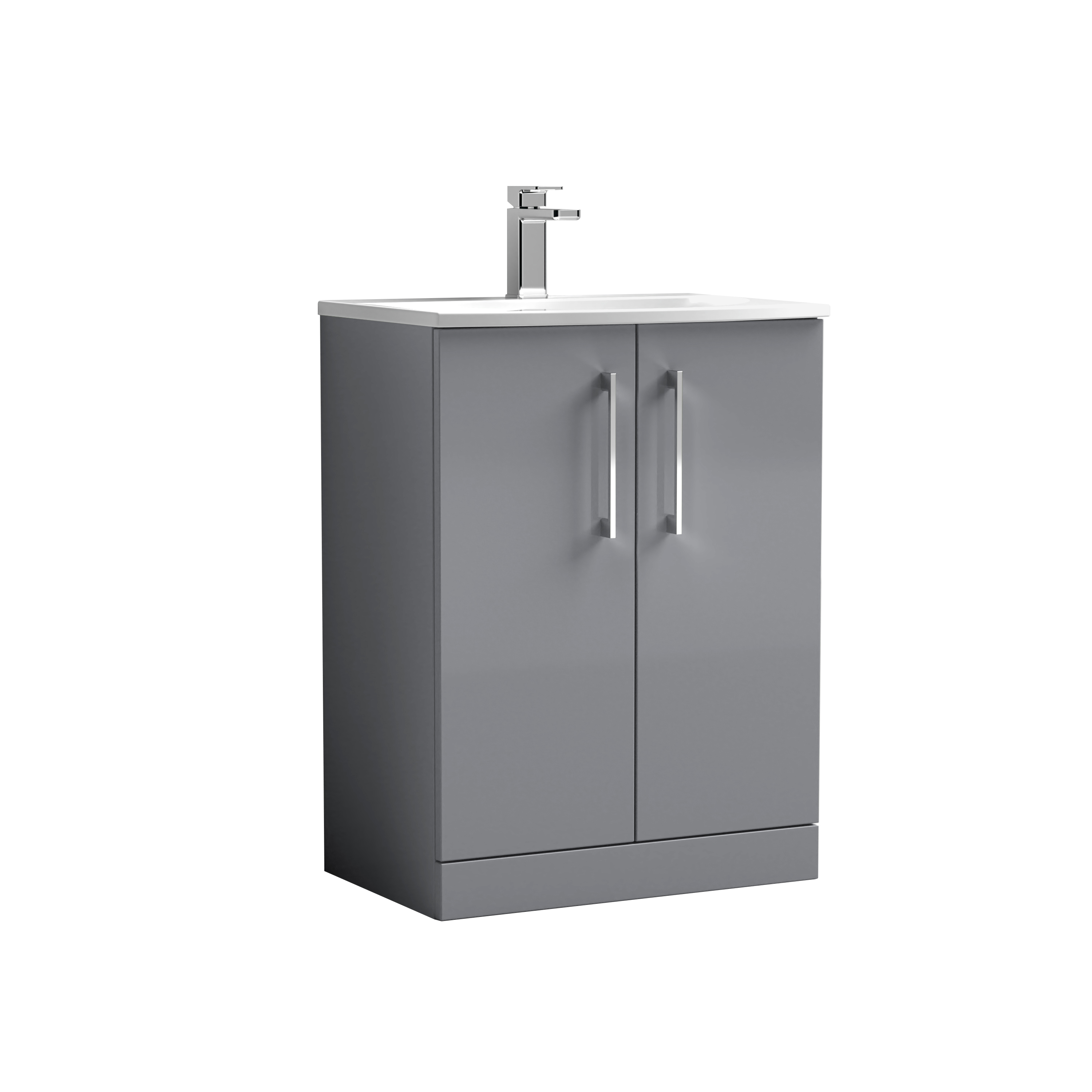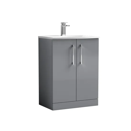 nuie Arno Floor Standing 2 Door Vanity & Curved Ceramic Basin, 600mm - Satin Grey