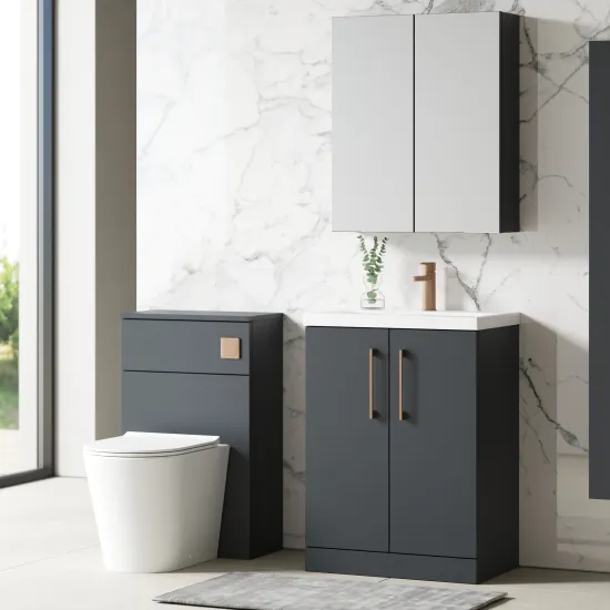 nuie Arno Floor Standing 2 Door Vanity & Mid-Edge Ceramic Basin, 600mm - Satin Anthracite