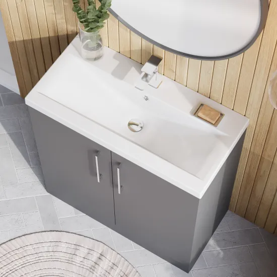 Contemporary floor standing design provides ample storage for all your bathroom toiletries and cleaning supplies. Available in 8 sleek colour ways. Soft close doors ensures peace ensues throughout your home. Supplied rigid for easy installation. Vitreous china basin pre-drilled with 1 tap hole.