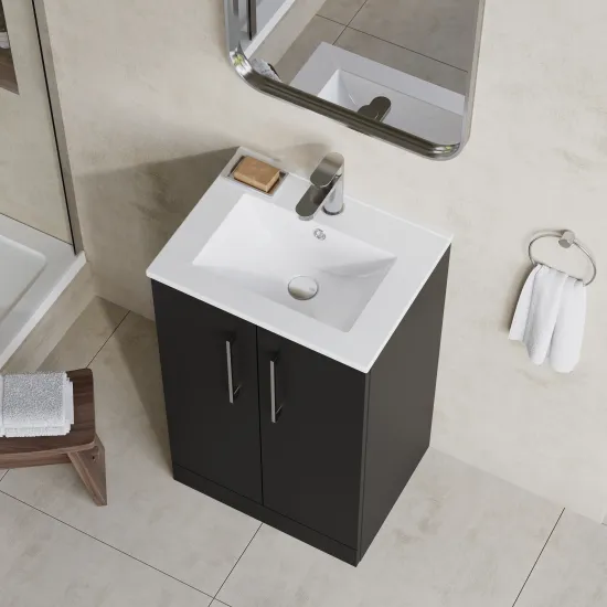 nuie Arno Floor Standing 2 Door Vanity & Minimalist Ceramic Basin, 500mm - Satin Anthracite