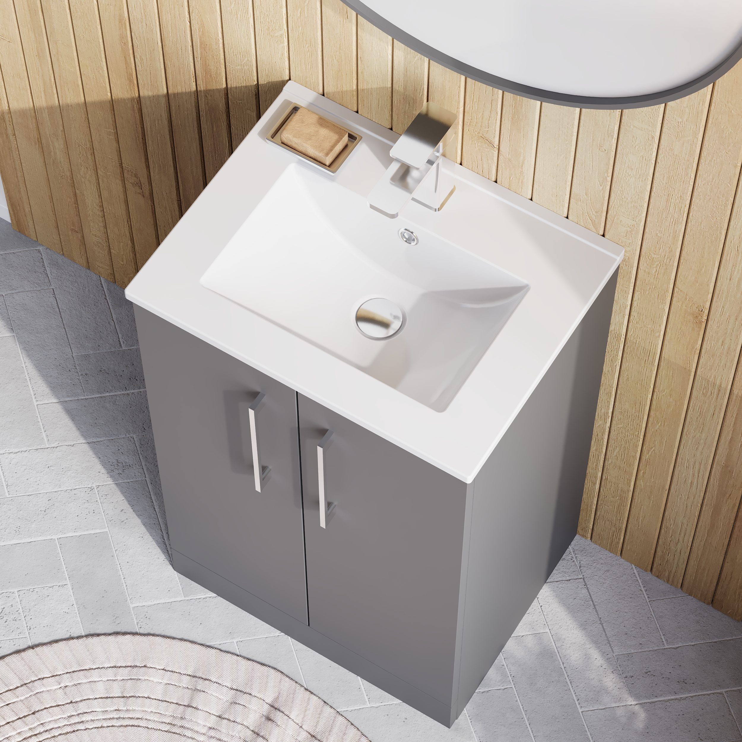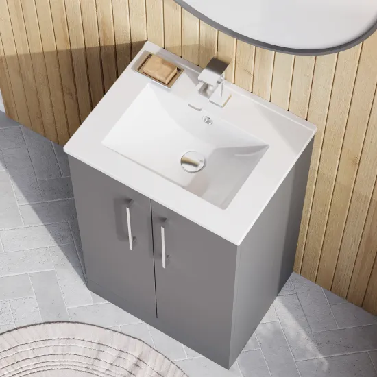 nuie Arno Floor Standing 2 Door Vanity & Minimalist Ceramic Basin, 500mm - Satin Grey