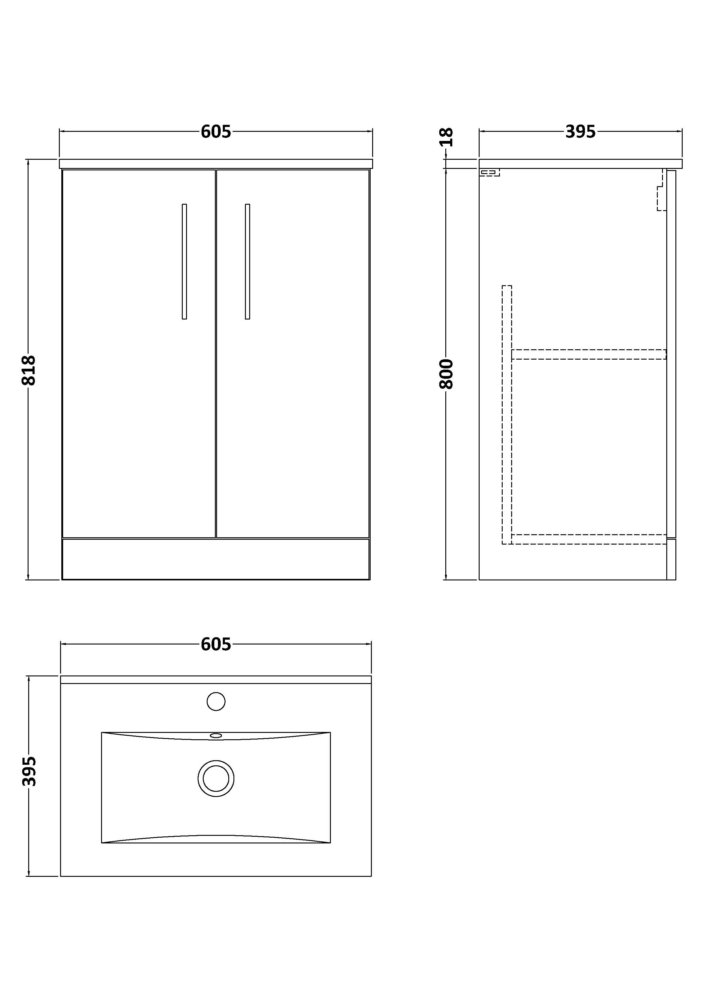 Arno Floor Standing 2 Door Vanity & Minimalist Ceramic Basin, 600mm