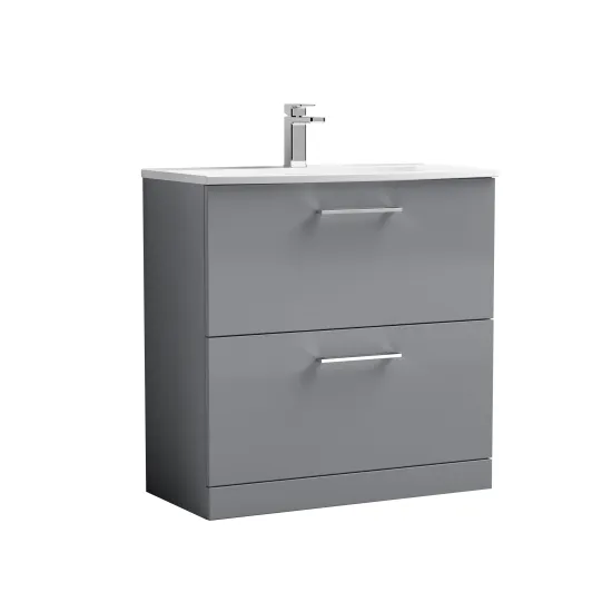 nuie Arno Floor Standing 2 Drawer Vanity & Curved Ceramic Basin, 800mm - Satin Grey