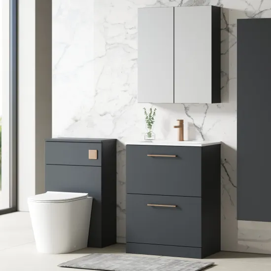 nuie Arno Floor Standing 2 Drawer Vanity & Minimalist Ceramic Basin, 600mm - Satin Anthracite