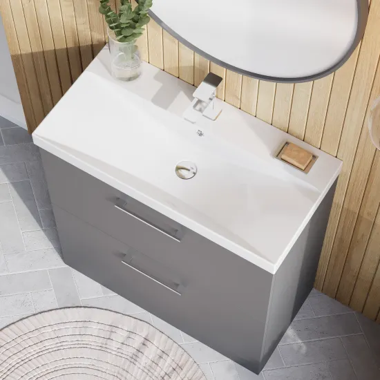 nuie Arno Floor Standing 2 Drawer Vanity & Thin-Edge Ceramic Basin, 800mm - Satin Grey
