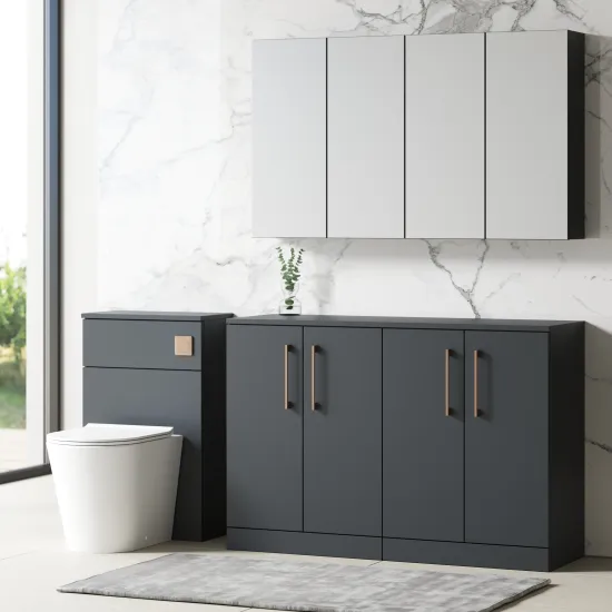 nuie Arno Floor Standing 4 Door Vanity & Laminate Worktop, 1200mm - Satin Anthracite