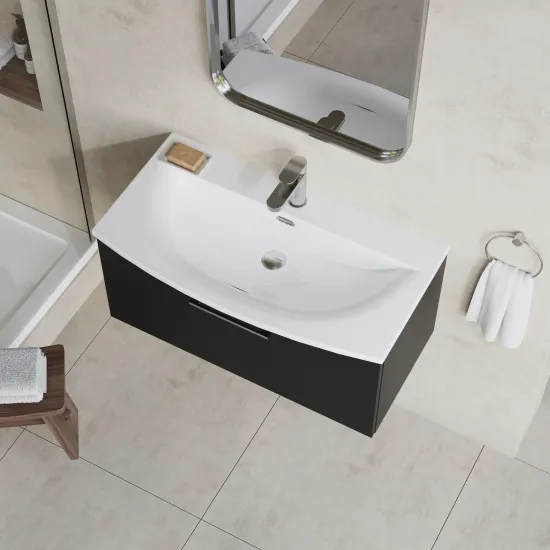 nuie Arno Wall Hung 1 Drawer Vanity & Curved Ceramic Basin, 800mm - Satin Anthracite