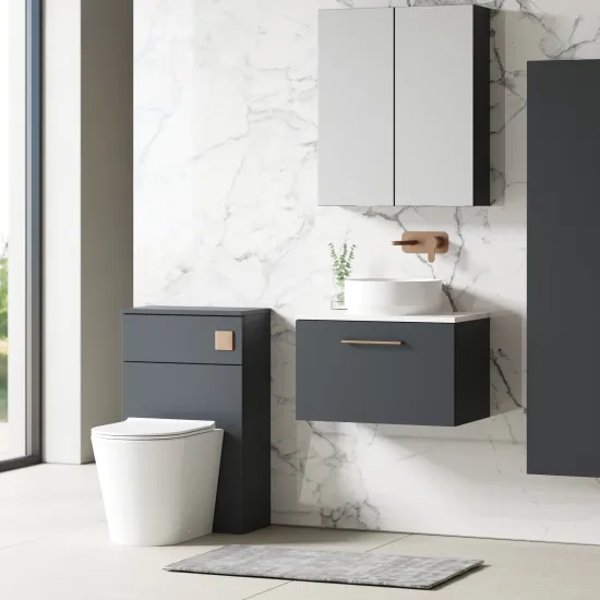 nuie Arno Wall Hung 1 Drawer Vanity & Laminate Worktop, 600mm - Satin Anthracite/Sparkle White