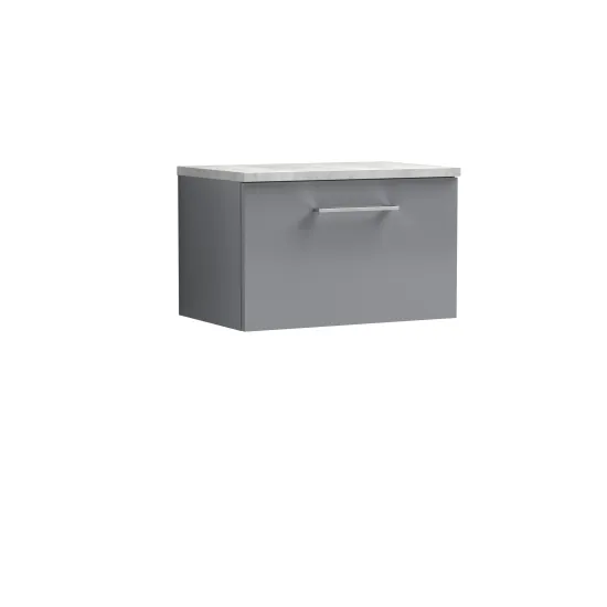 nuie Arno Wall Hung 1 Drawer Vanity & Laminate Worktop, 600mm - Satin Grey/Bellato Grey