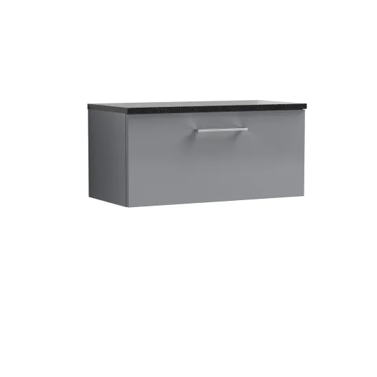 nuie Arno Wall Hung 1 Drawer Vanity & Laminate Worktop, 800mm - Satin Grey/Sparkle Black