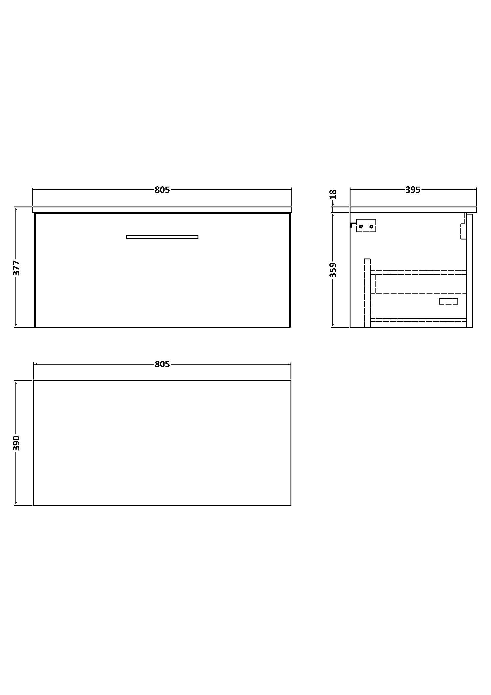 Arno Wall Hung 1 Drawer Vanity & Laminate Worktop, 800mm