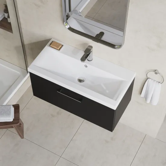 nuie Arno Wall Hung 1 Drawer Vanity & Mid-Edge Ceramic Basin, 800mm - Satin Anthracite