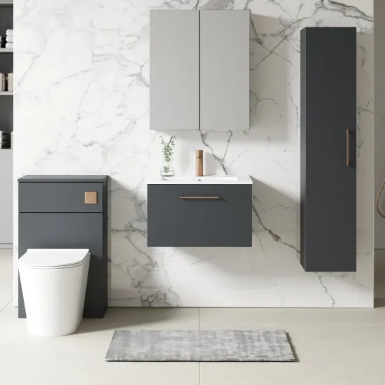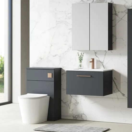 nuie Arno Wall Hung 1 Drawer Vanity & Minimalist Ceramic Basin, 600mm - Satin Anthracite