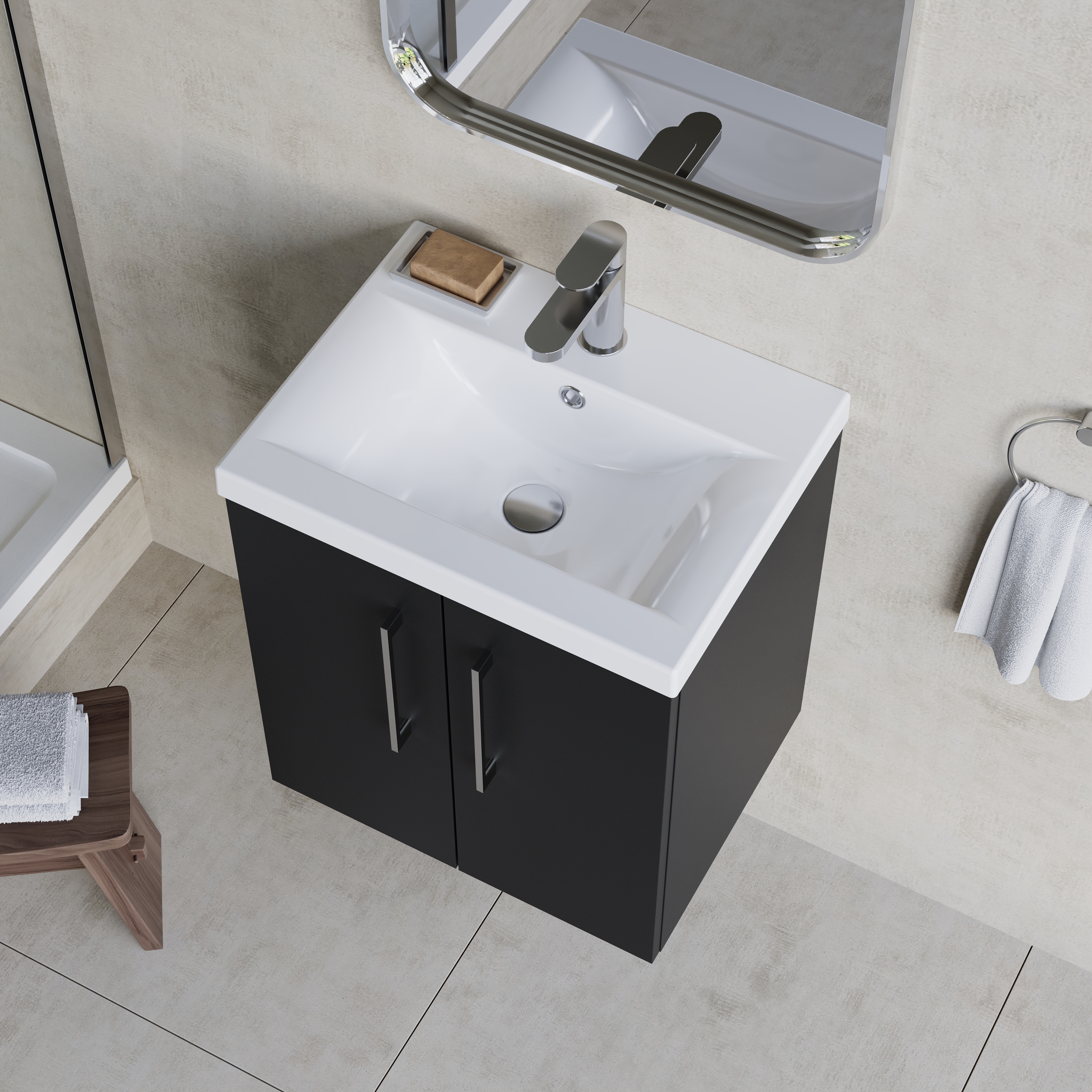 nuie Arno Wall Hung 2 Door Vanity & Mid-Edge Ceramic Basin, 500mm - Satin Anthracite