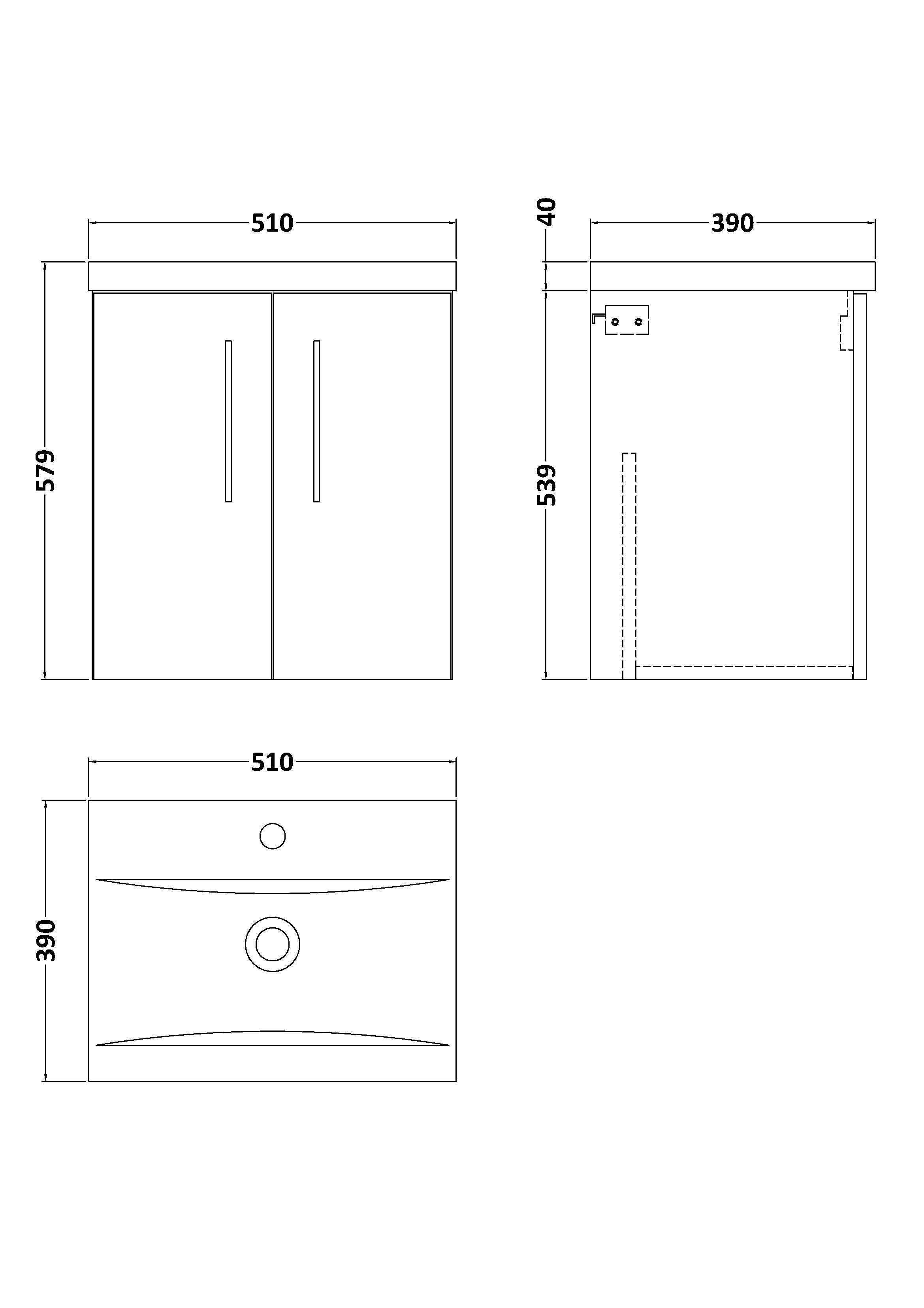 Arno Wall Hung 2 Door Vanity & Mid-Edge Ceramic Basin, 500mm