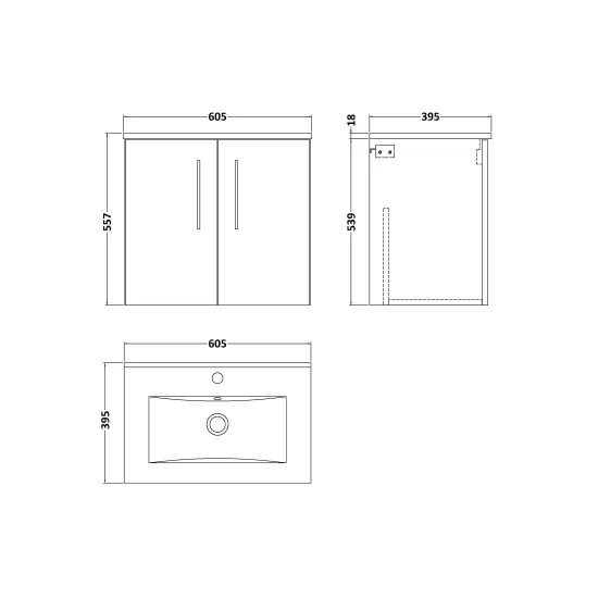 Arno Wall Hung 2 Door Vanity & Minimalist Ceramic Basin, 600mm