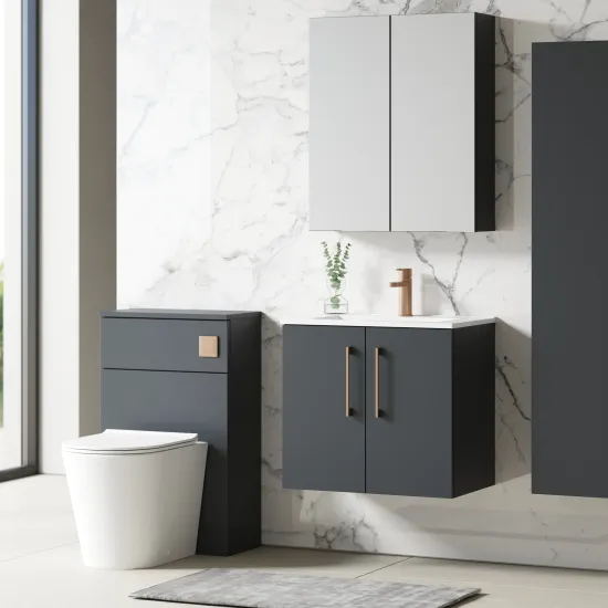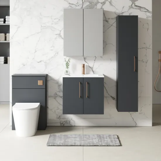 nuie Arno Wall Hung 2 Door Vanity & Minimalist Ceramic Basin, 600mm - Satin Anthracite