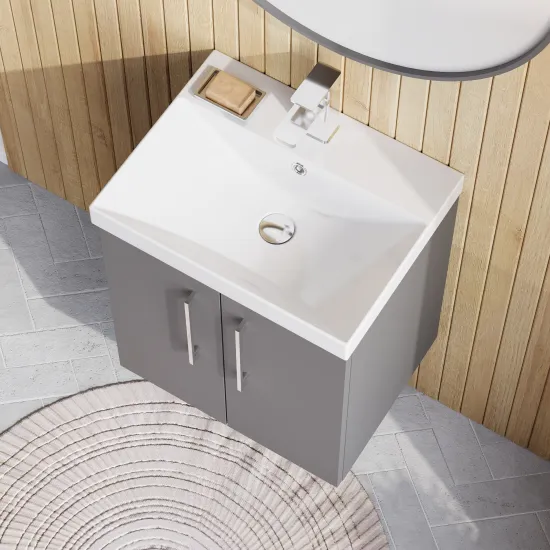 nuie Arno Wall Hung 2 Door Vanity & Thin-Edge Ceramic Basin, 500mm - Satin Grey