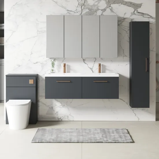nuie Arno Wall Hung 2 Drawer Vanity & Double Ceramic Basin, 1200mm - Satin Anthracite