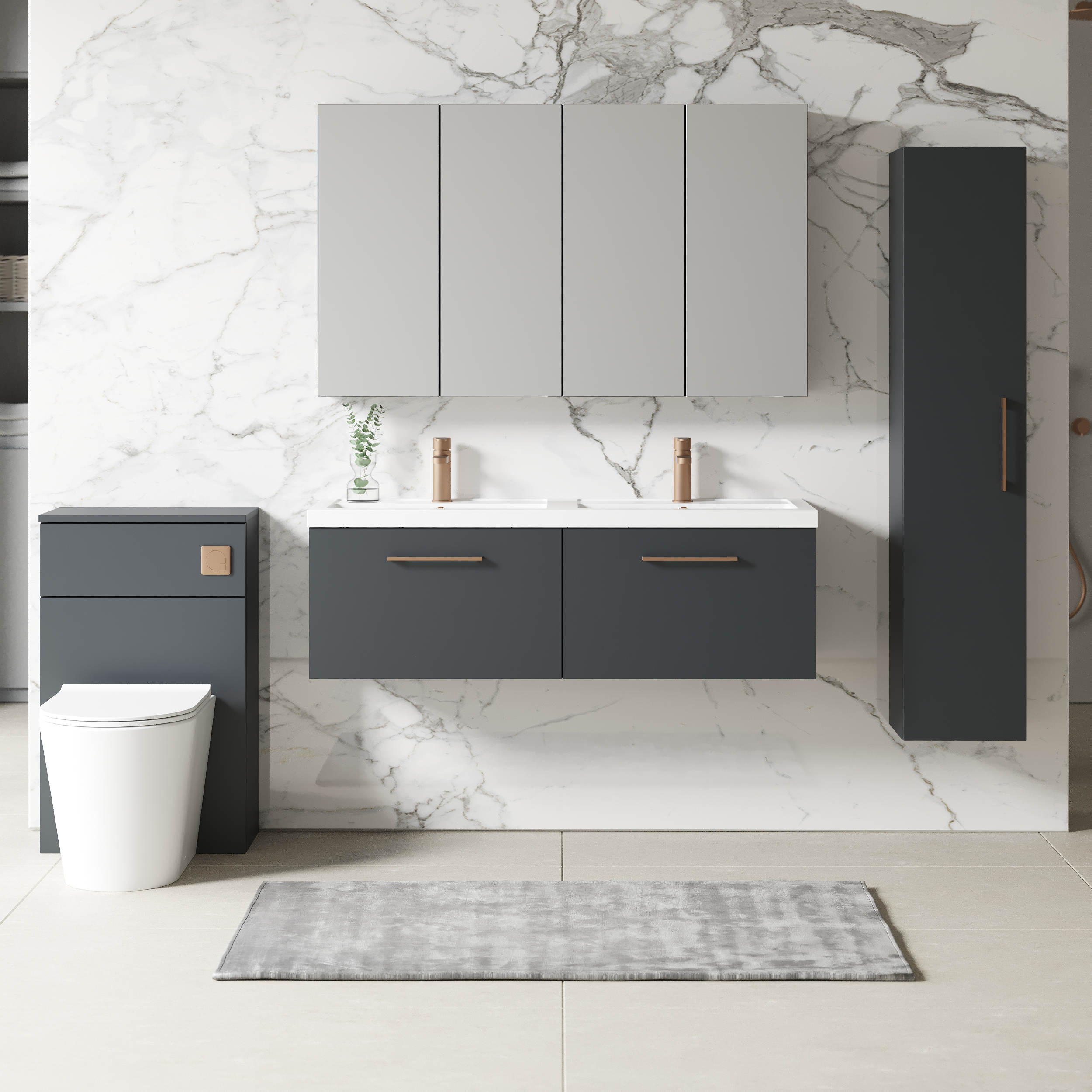 This gloss white finish compliments any modern bathroom to create a designer look. This wall hung unit creates more space in your bathroom giving the illusion of a bigger bathroom. This unit has soft close drawers which limits the daily wear and tear and provides a quieter closing action. Colour co-ordinate your unit with a gloss white WC unit. Supplied with high quality polymarble basin.