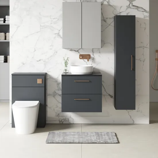 nuie Arno Wall Hung 2 Drawer Vanity & Laminate Worktop, 600mm - Satin Anthracite/Sparkle Black