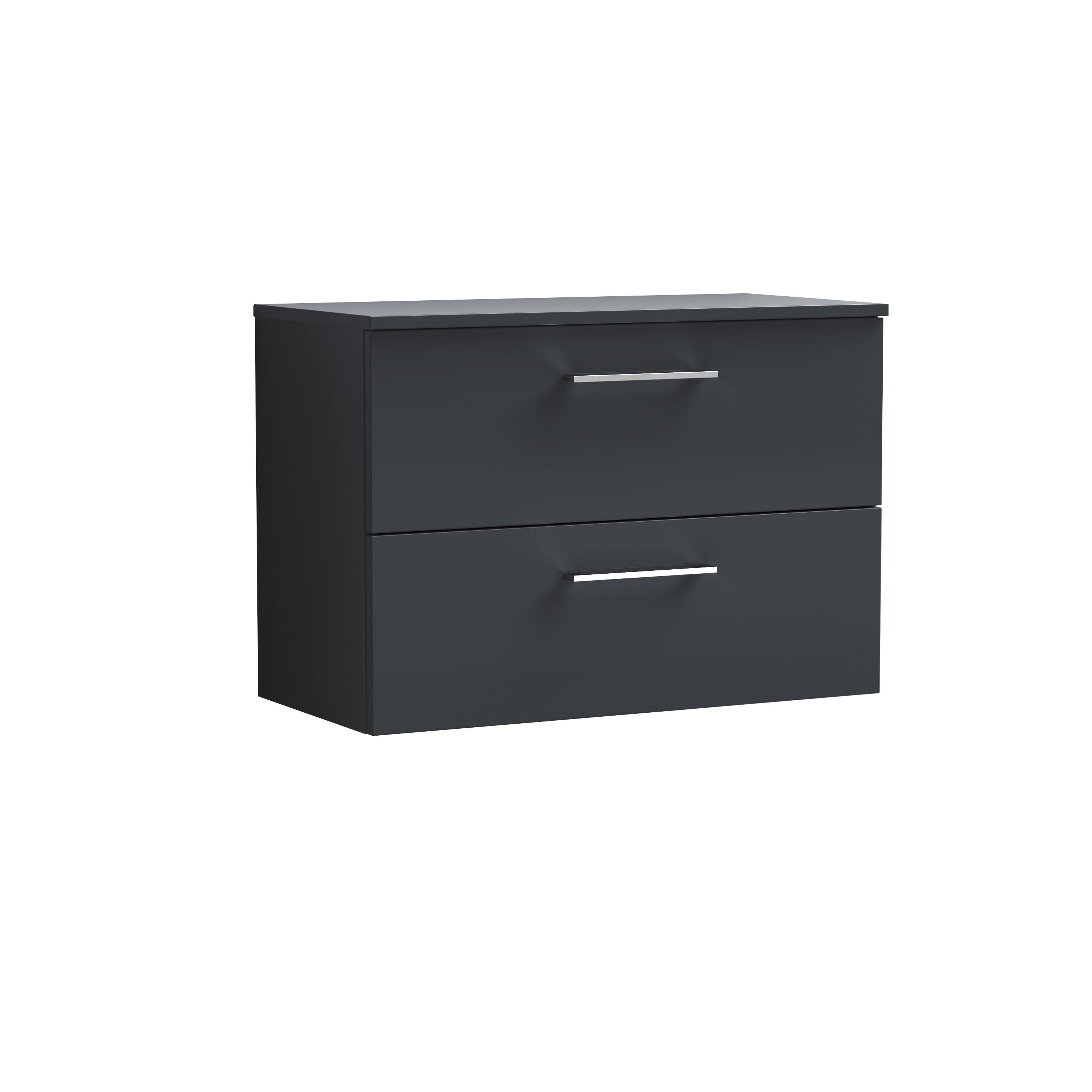 nuie Arno Wall Hung 2 Drawer Vanity & Laminate Worktop, 800mm - Satin Anthracite