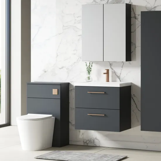 nuie Arno Wall Hung 2 Drawer Vanity & Mid-Edge Ceramic Basin, 600mm - Satin Anthracite
