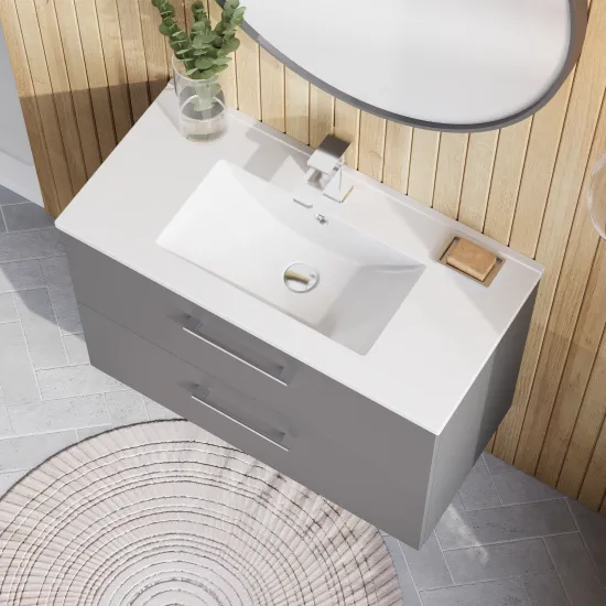 nuie Arno Wall Hung 2 Drawer Vanity & Minimalist Ceramic Basin, 800mm - Satin Grey