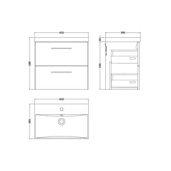 Arno Wall Hung 2 Drawer Vanity & Thin-Edge Ceramic Basin, 600mm