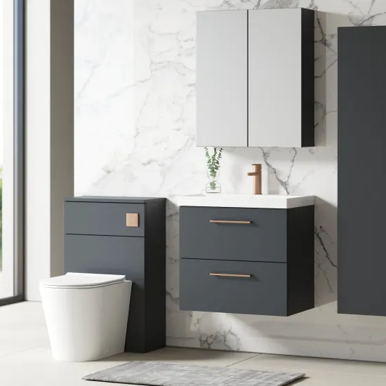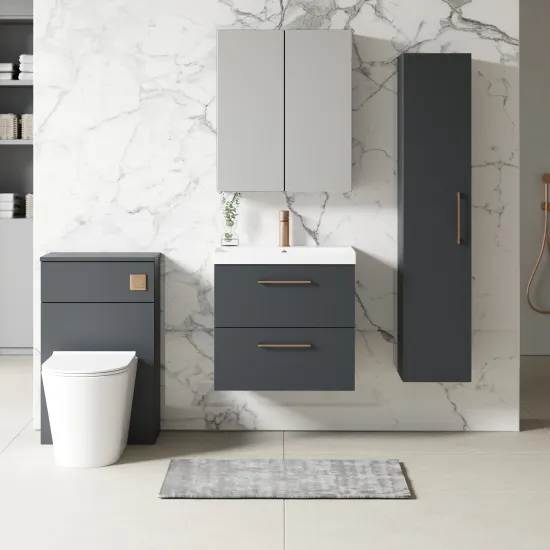 nuie Arno Wall Hung 2 Drawer Vanity & Thin-Edge Ceramic Basin, 600mm - Satin Anthracite