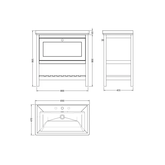 Minimum quantity for "Bexley Floor Standing 2 Door 1 Shelf Vanity & 3 Tap Hole Fireclay Basin, 800mm" is 1.
