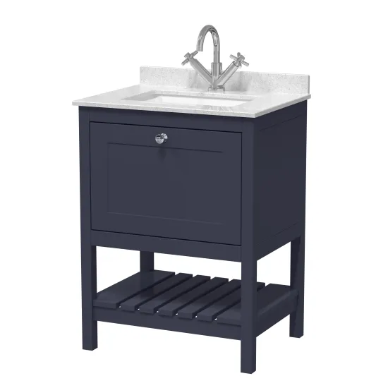 Hudson Reed Bexley Floor Standing 2 Door 1 Shelf Vanity & Single Bowl 1 Tap Hole Marble Top, 600mm - Indigo Blue/White