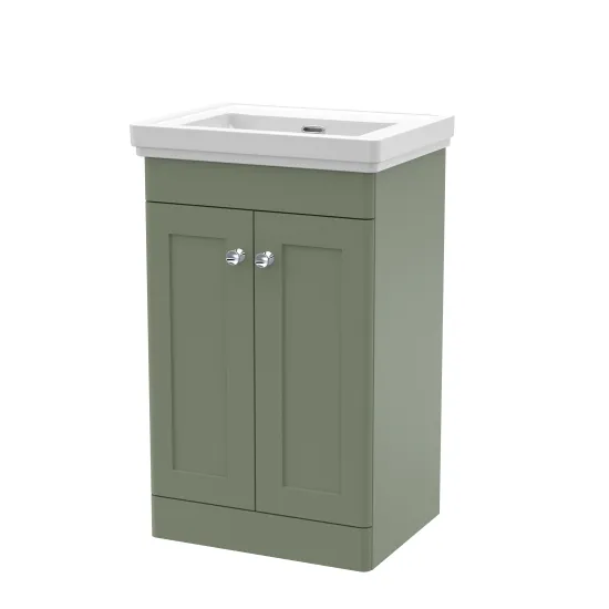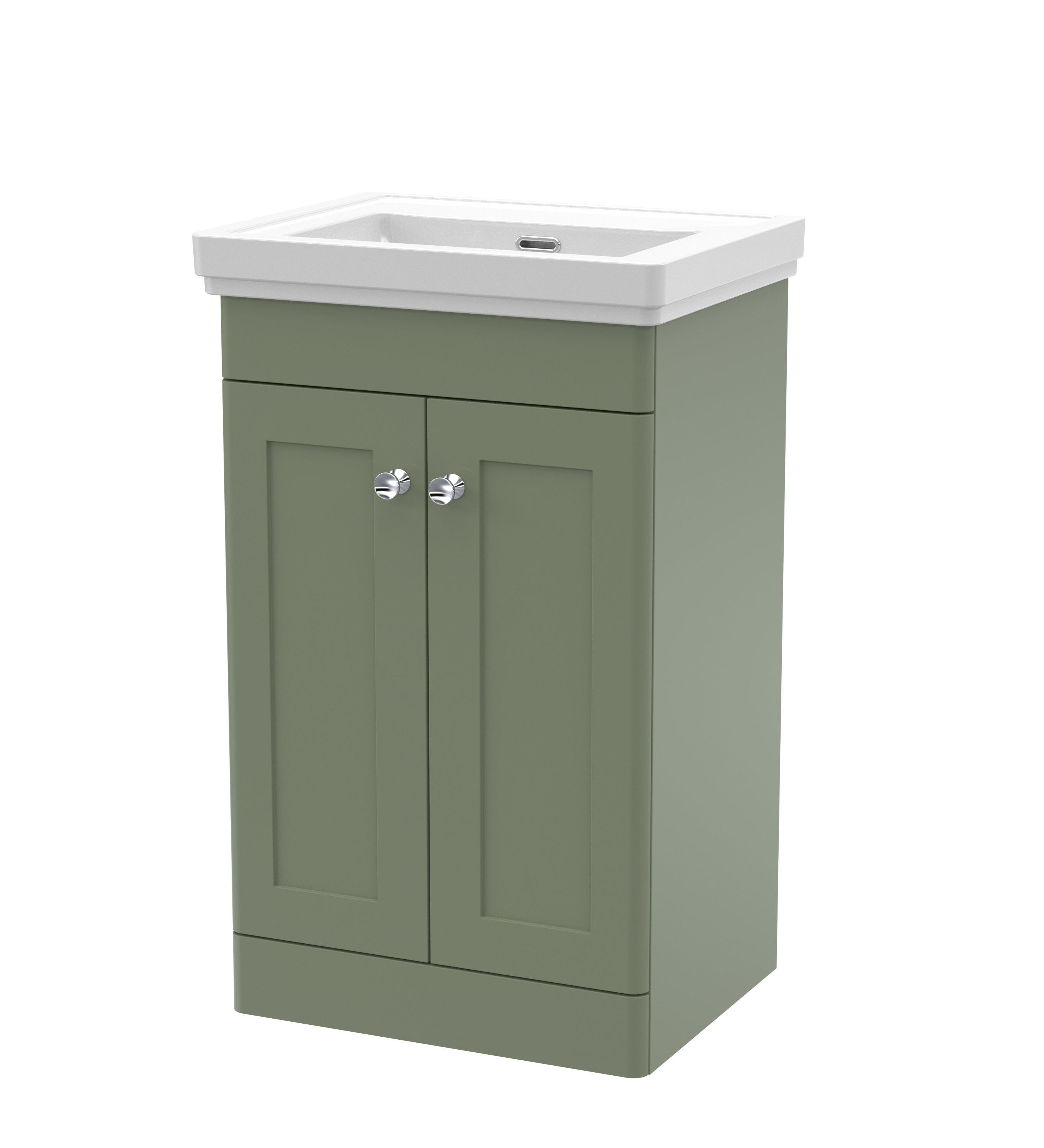 nuie Classique Floor Standing 2 Door Unit & 0 Tap Hole Fireclay Basin, 500mm - Satin Green