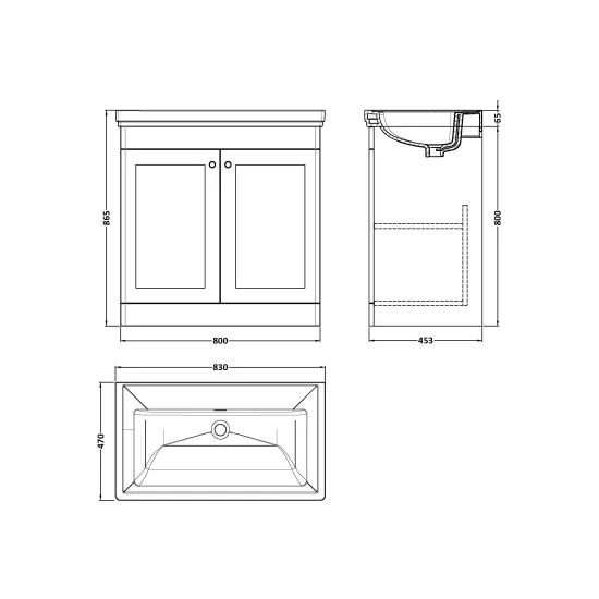 Classique Floor Standing 2 Door Unit & 0 Tap Hole Fireclay Basin, 800mm