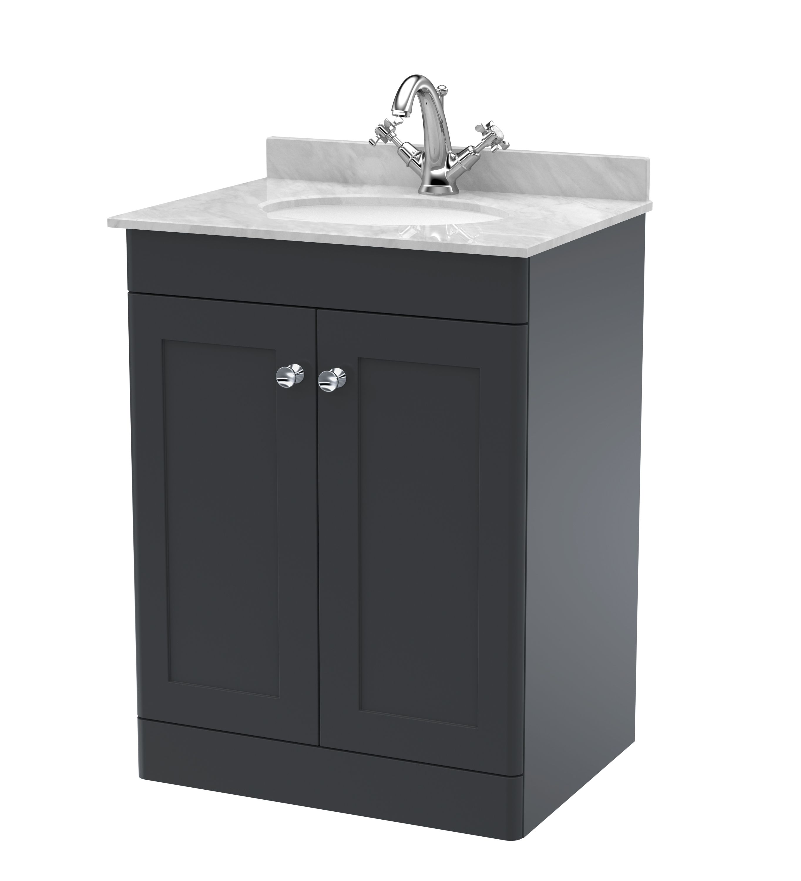 nuie Classique Floor Standing 2 Door Unit & 1 Tap Hole Marble Top with Oval Basin, 600mm - Satin Anthracite/Grey