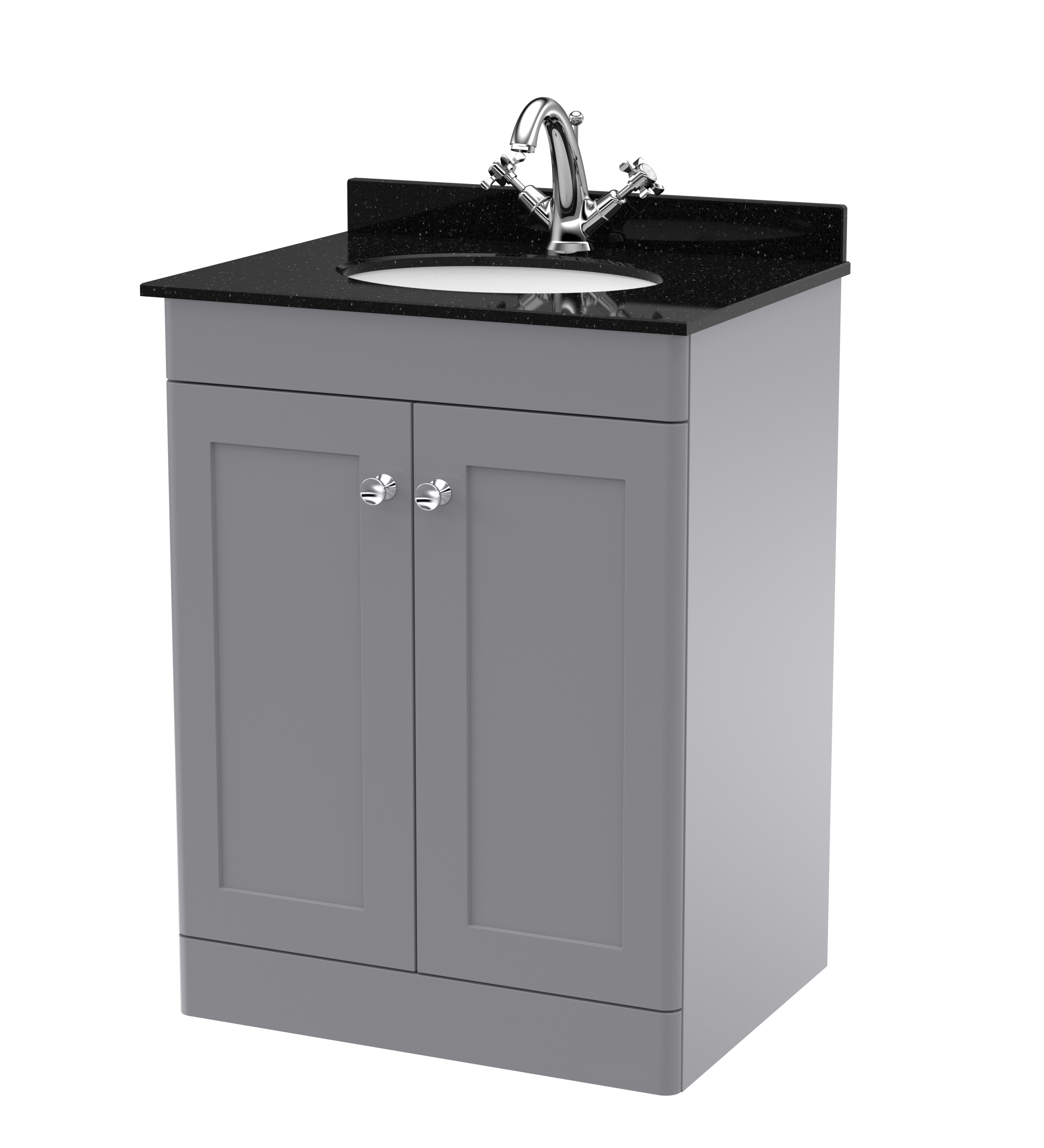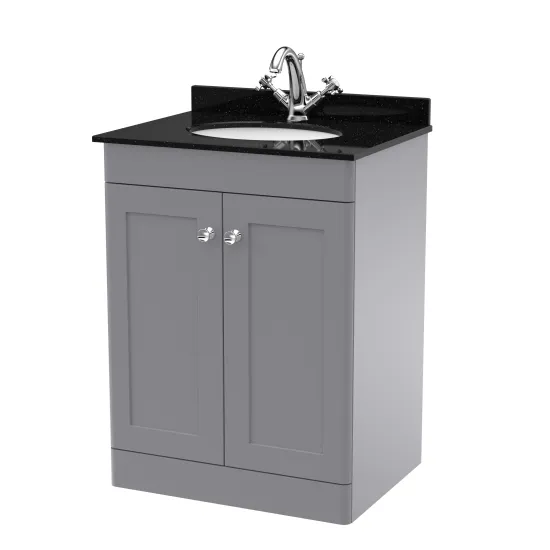 nuie Classique Floor Standing 2 Door Unit & 1 Tap Hole Marble Top with Oval Basin, 600mm - Satin Grey/Black