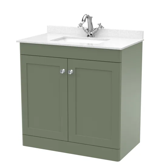 nuie Classique Floor Standing 2 Door Unit & 1 Tap Hole Marble Top with Square Basin, 800mm - Satin Green/White