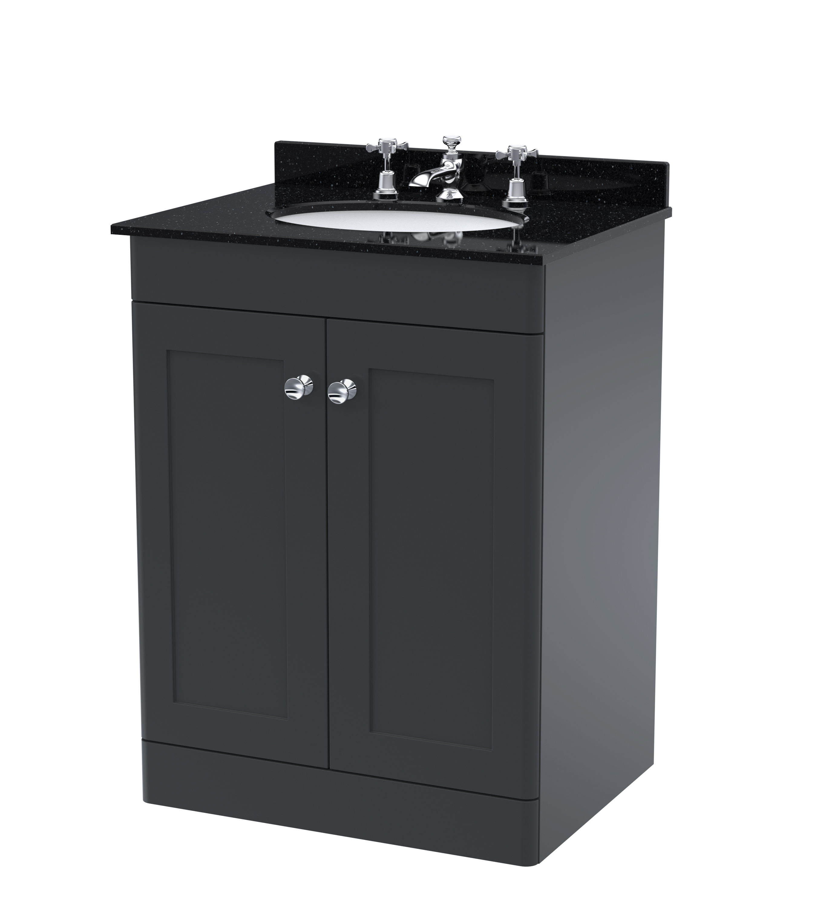 nuie Classique Floor Standing 2 Door Unit & 3 Tap Hole Marble Top with Oval Basin, 600mm - Satin Anthracite/Black