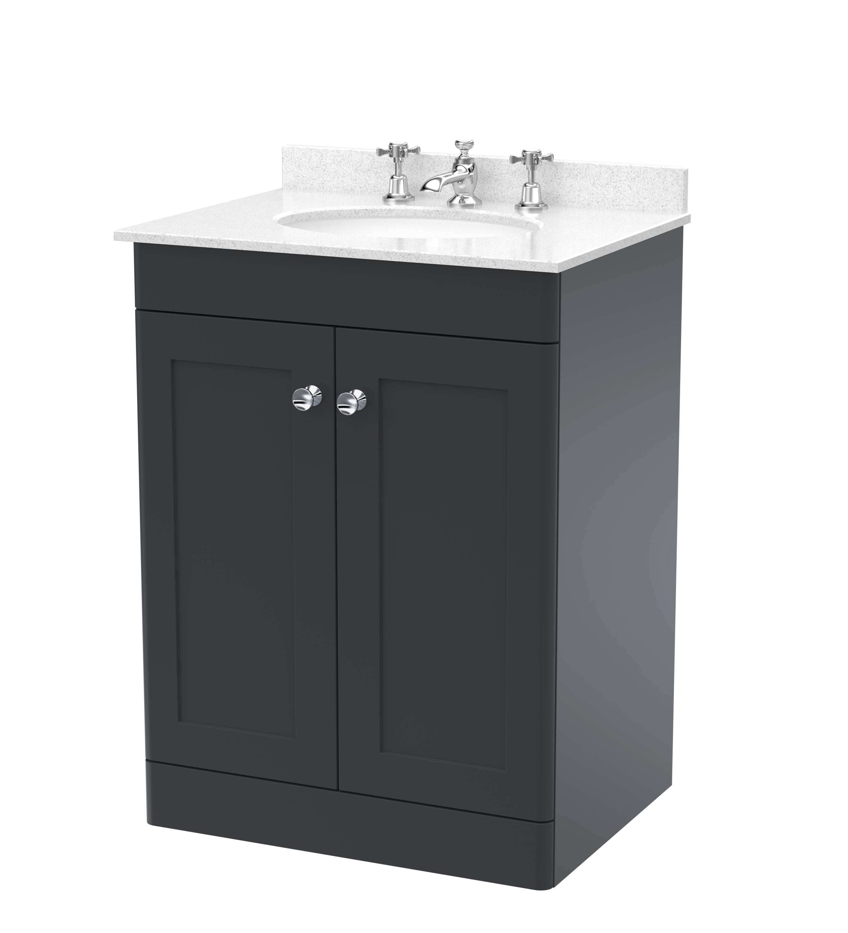 nuie Classique Floor Standing 2 Door Unit & 3 Tap Hole Marble Top with Oval Basin, 600mm - Satin Anthracite/White