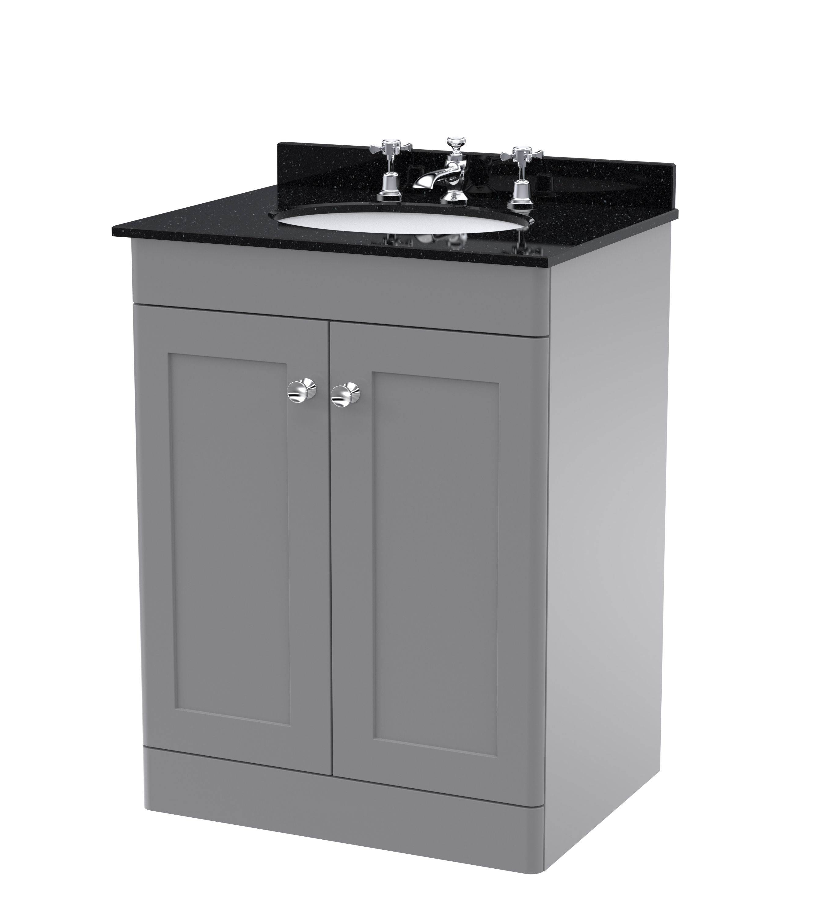 nuie Classique Floor Standing 2 Door Unit & 3 Tap Hole Marble Top with Oval Basin, 600mm - Satin Grey/Black