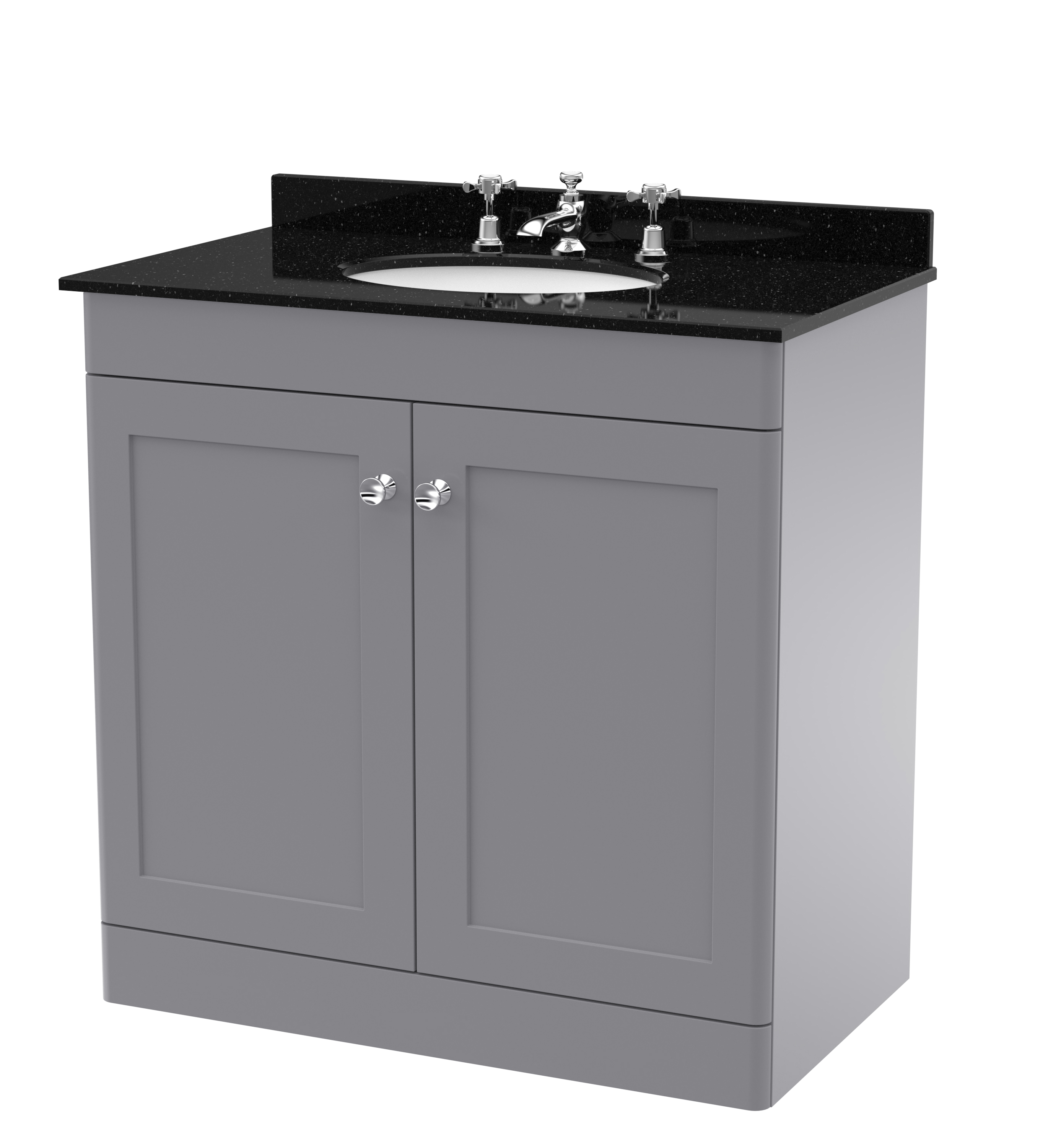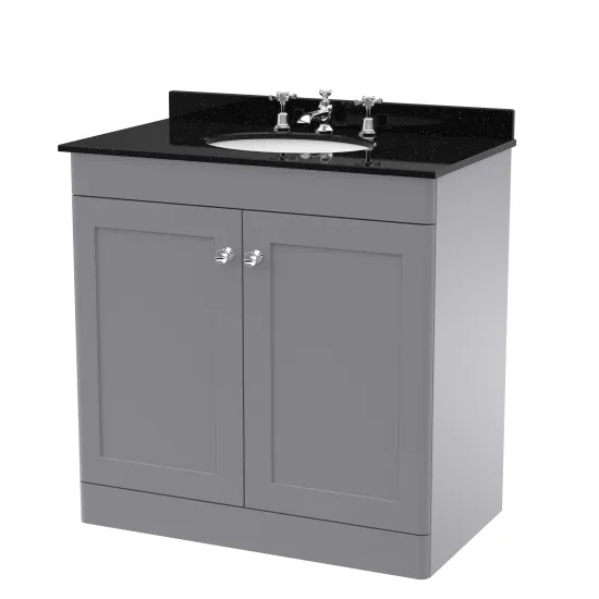 nuie Classique Floor Standing 2 Door Unit & 3 Tap Hole Marble Top with Oval Basin, 800mm - Satin Grey/Black