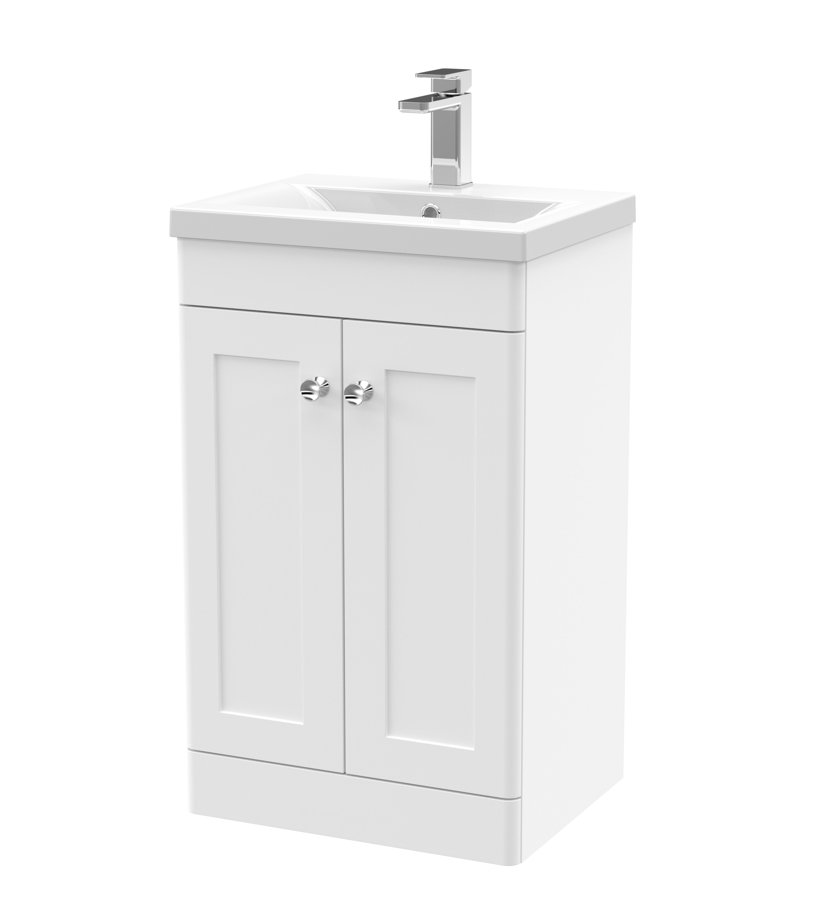 nuie Classique Floor Standing 2 Door Unit & Mid-Edge Ceramic Basin, 500mm - Satin White