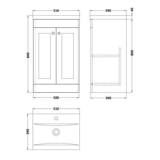 Classique Floor Standing 2 Door Unit & Mid-Edge Ceramic Basin, 500mm