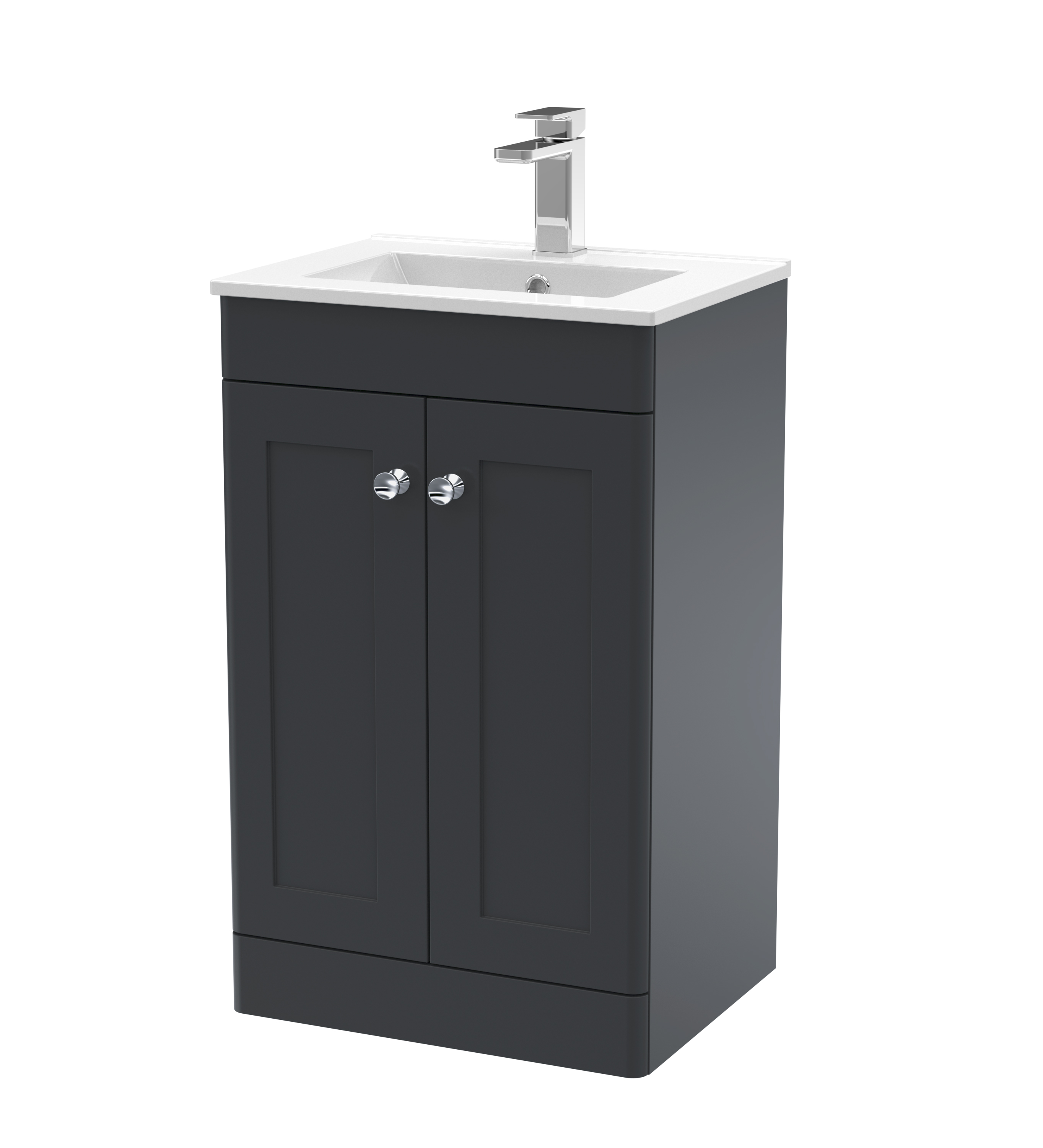 nuie Classique Floor Standing 2 Door Unit & Minimalist Ceramic Basin, 500mm - Satin Anthracite
