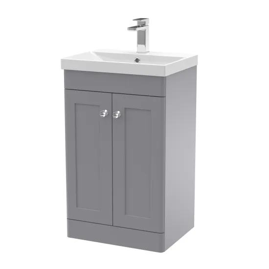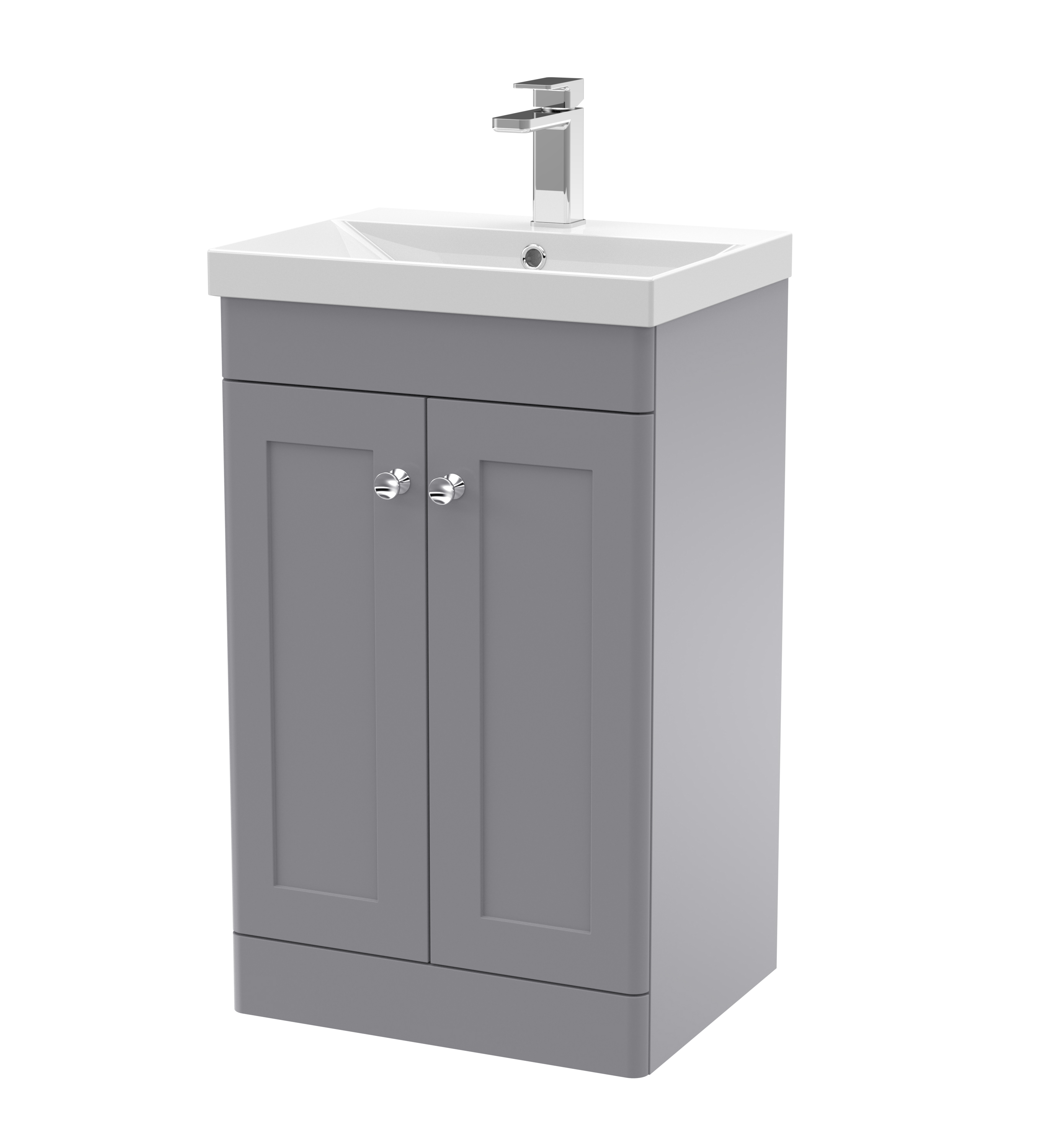 nuie Classique Floor Standing 2 Door Unit & Thin-Edge Ceramic Basin, 500mm - Satin Grey